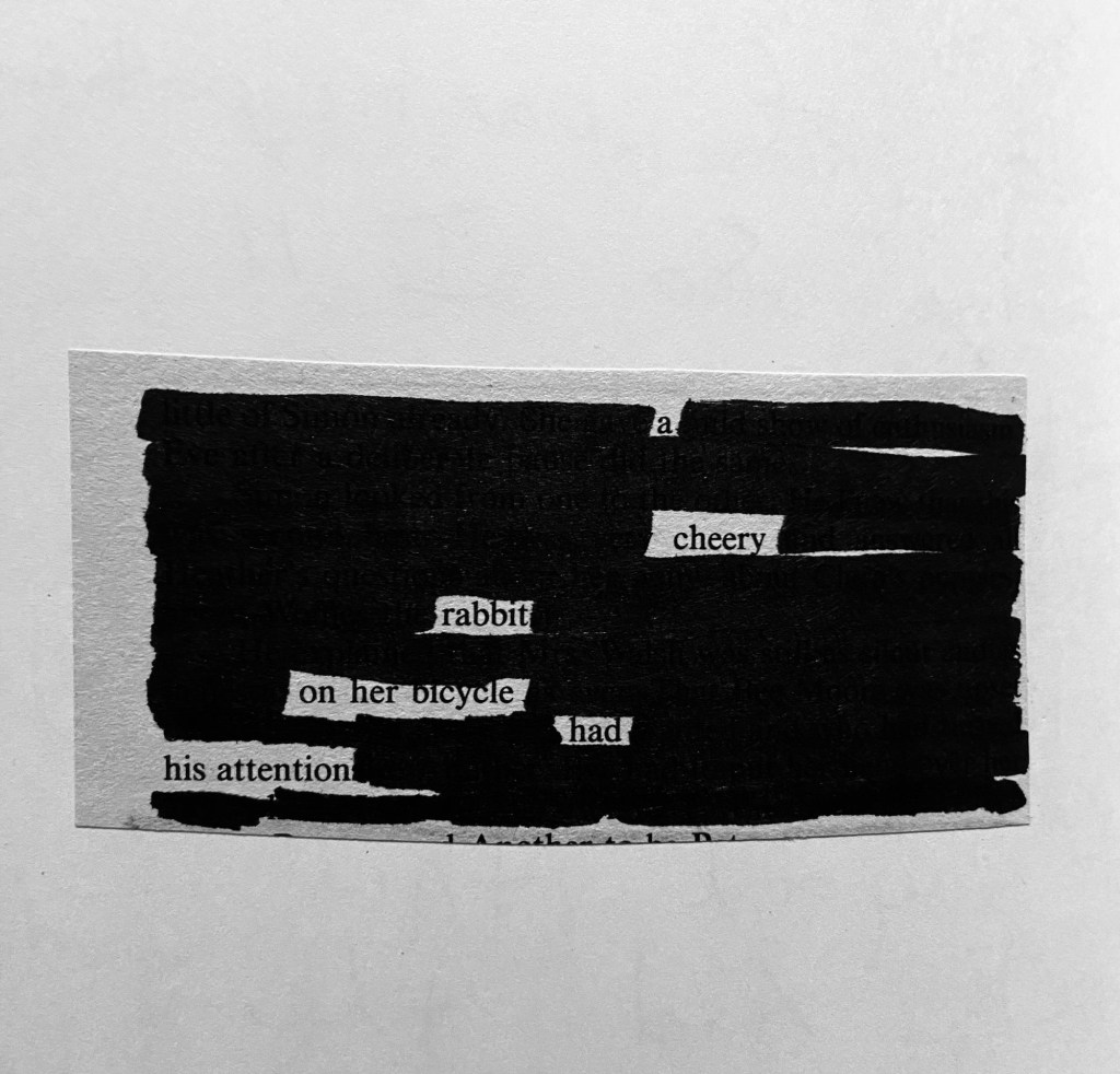 Regular blog readers and Instagram followers know how much I enjoy creating blackout poems. I use old free books to make them, but occasionally use other means as well. I enjoy seeing what alternative sentences emerge from the words on a given page. Sometimes they seem profound, at other times they’re rather ordinary.