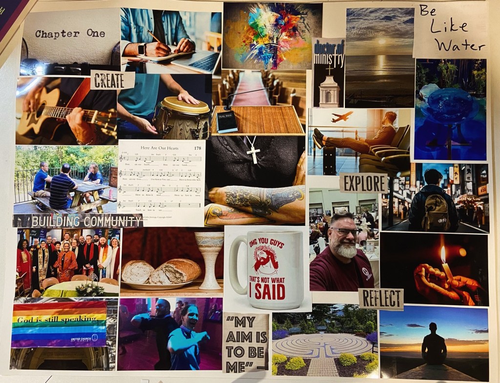 I decided that I would create a vision board to explore what is at my vocational center. This would include elements that have sustained and grounded me so far, as well as those I aspire to include in the future.